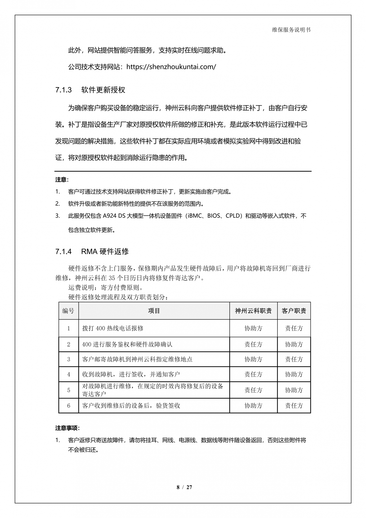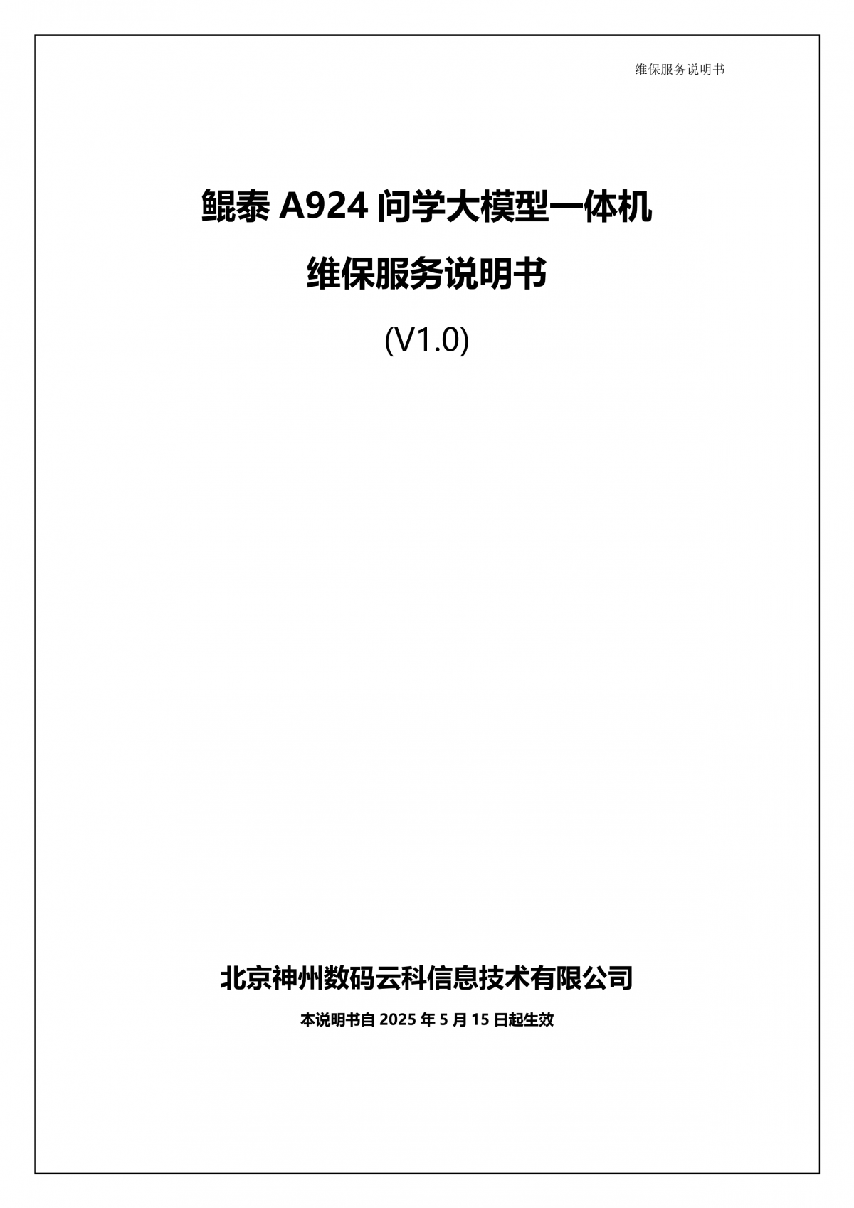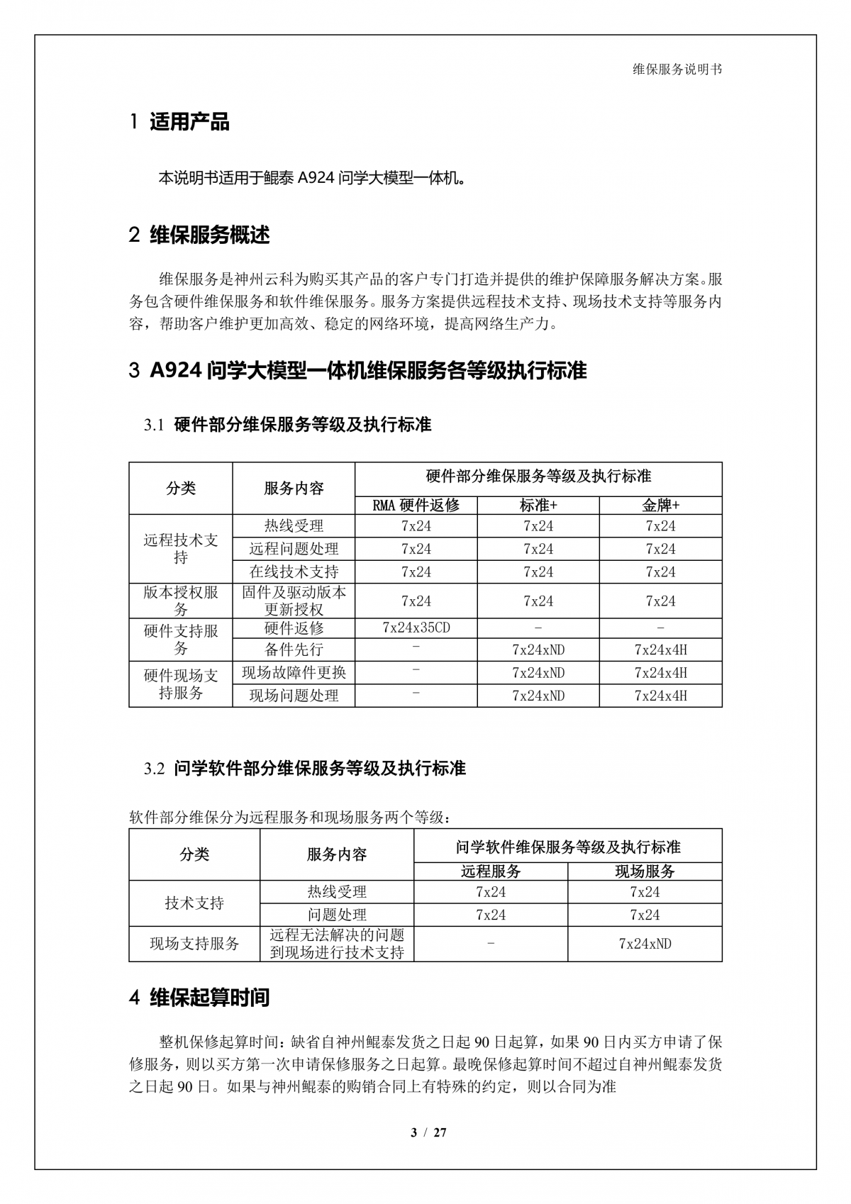 mg冰球突破(中国)A924 DS大模型一体机硬件维保服务说明书_V1.1
