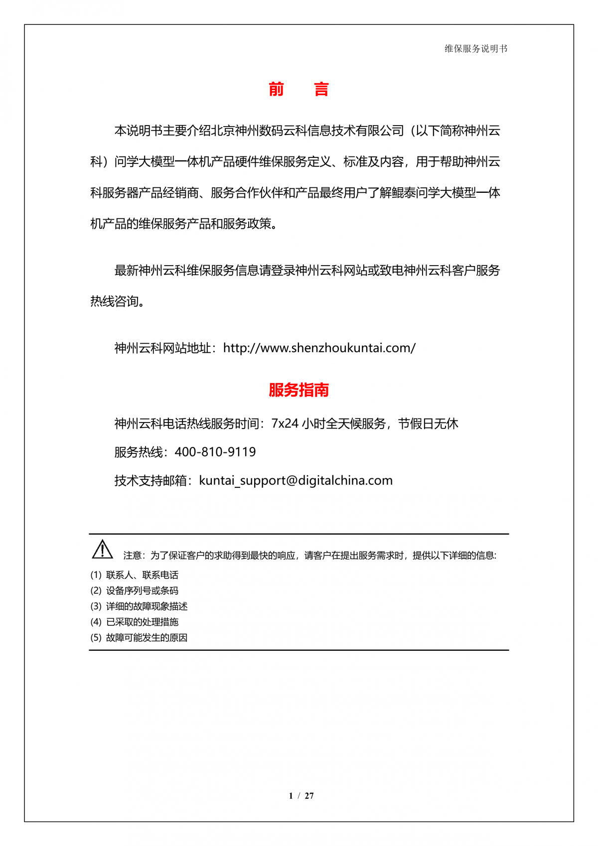 mg冰球突破(中国)A924 问学大模型一体机维保服务说明书_V1.0